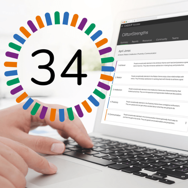 Odkryj swoje naturalne talenty i buduj na ich bazie mocne strony. W ramach tego pakietu otrzymujesz indywidualny kod do pełnego badania CliftonStrengths (34 talenty) czyli popularnego Testu Gallupa. Dodatkowo otrzymasz mini-ebook zawierający informacje, jak przygotować się do testu oraz jak wykonać go po polsku.
